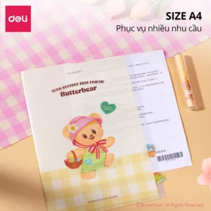 File Tài Liệu 4 Ngăn File Lá Bìa Lá Hở Cạnh Butterbear x Deli Tiện Lợi, Dễ Thương Chống Nước Lưu Trữ Giấy Tờ, Bài KiTra