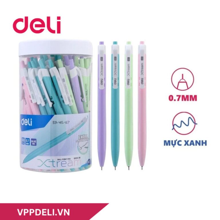 Bút bi bấm Deli EQ03336 ngòi 0.7mm là dòng bút bi dầu viết trơn tru, không bị thấm mực, phù hợp với đối tượng văn phòng, học sinh…
